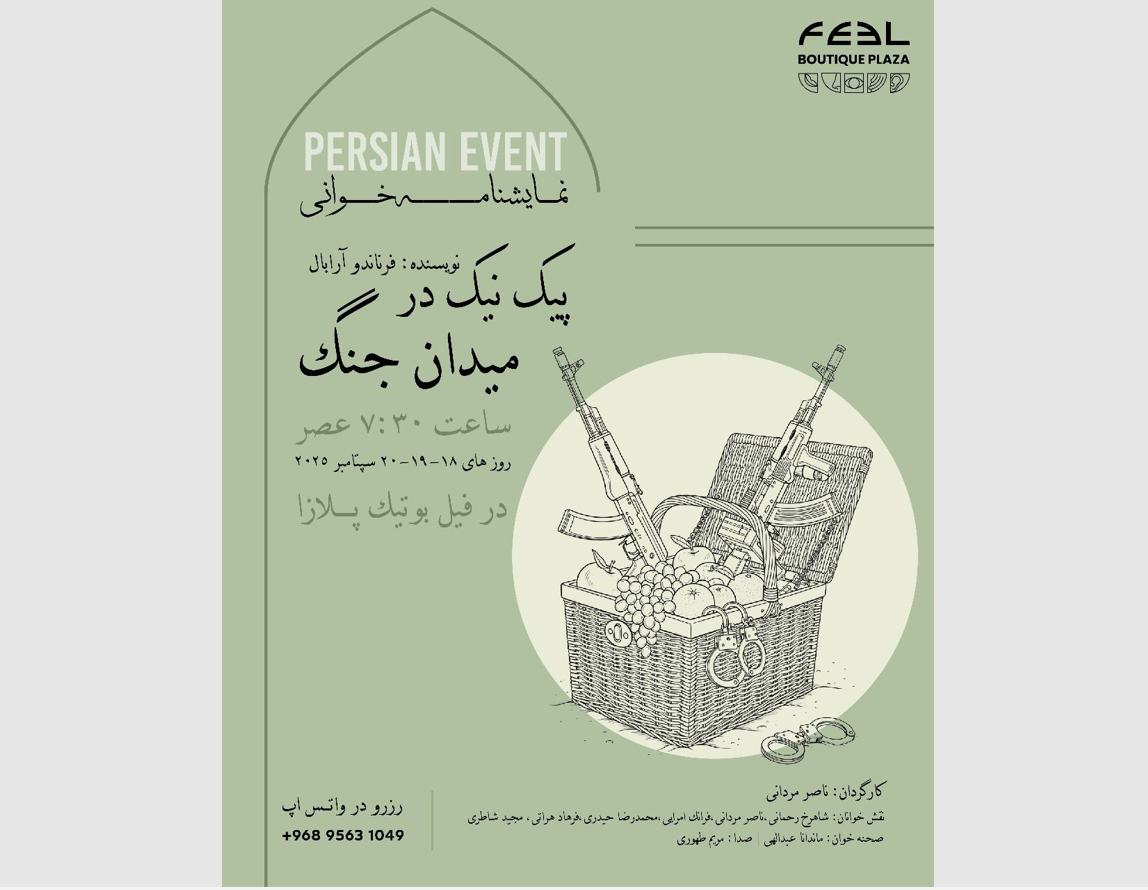 پیک نیک در میدان جنگ در تاریخ های ۱۸، ۱۹ و ۲۰ سپتامبر ۲۰۲۵ در فیل بوتیک پلازا، مسقط به صورت نمایشنامه خوانی اجرا شد.