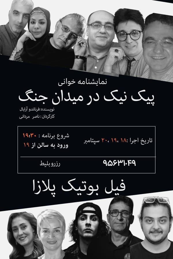 به گزارش هفت رخ، نمایشنامه‌ پیک‌نیک در میدان جنگ به نویسندگی فرناندو آرابال، ترجمه ی داریوش مودبیان به کارگردانی